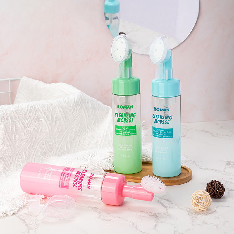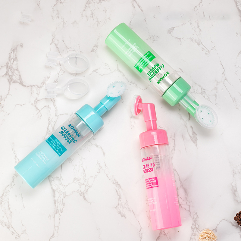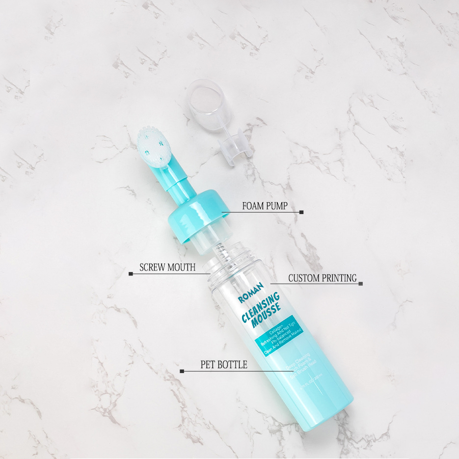 50 ml 60 ml 80 ml 100 ml 120 ml 150 ml Hud Soft Touch Kroppsrengöring Ansiktstvätt Massage Husdjursplast skummande flaskor med silikonborste Lotionpump , glöm smutsiga händer och utspädda rengöringsmedel. Den innovativa skumflaskan utrustad med ett inbyggt silikonborsthuvud förvandlar den dagliga ansiktsrengöringsritualen till en unikt effektiv och njutbar upplevelse. Tryck bara på pumpen och ett moln av tätt, perfekt luftat skum genereras omedelbart och levereras direkt på de mjuka, flexibla silikonborsten. Detta innebär att du slipper löddra i handflatorna eller kämpa för att applicera vattniga geler – det rika skummet är redo för omedelbar, målinriktad applicering. Användare glider den milda silikonborsten över huden och njuter av både skummets effektiva rengöring och en lugnande mikromassage som stimulerar cirkulationen utan irritation, vilket gör den idealisk för att ta bort daglig smuts och förbereda huden.