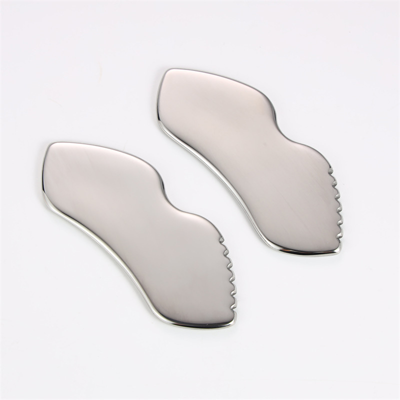 Detta är redo att skicka 304 rostfritt stål gua sha board slitstarkt guasha-skrapmassageverktyg i metall.