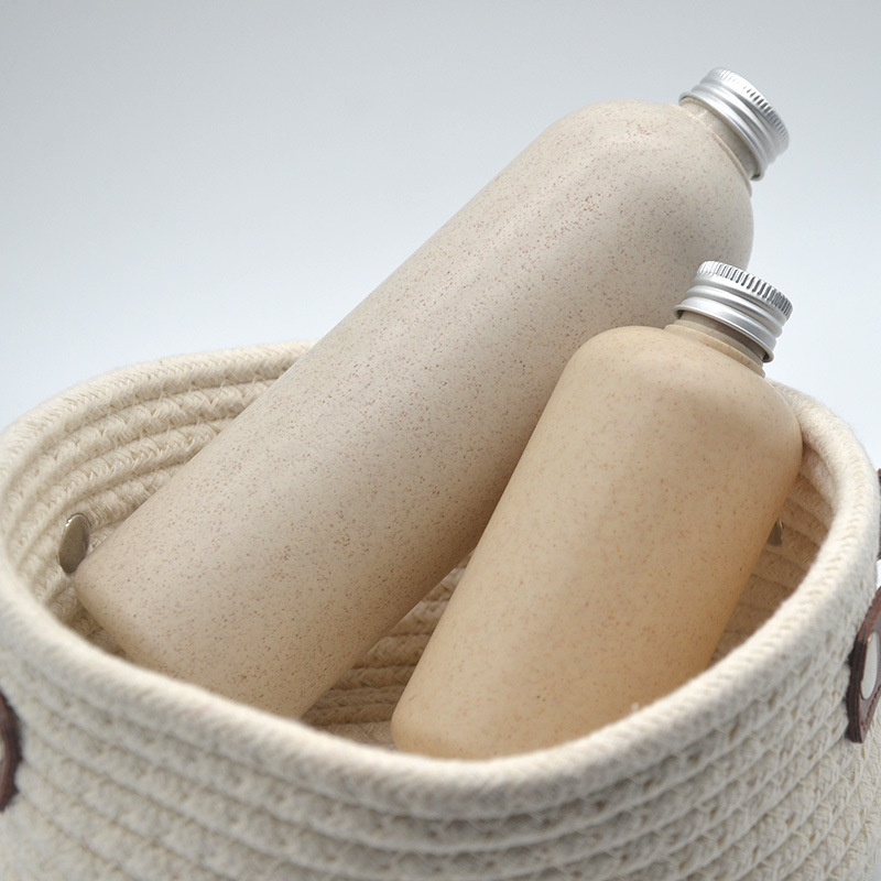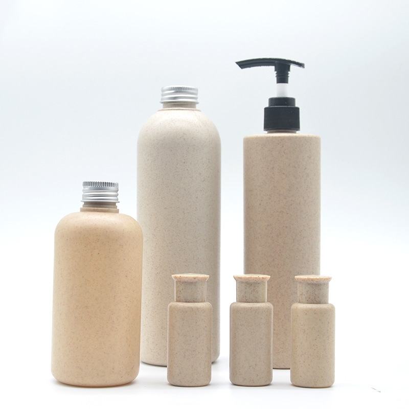Denna tomma kosmetiska 30ml 100ml 250ml 300ml 500ml Lotion biologiskt nedbrytbar vetehalm Plast Body Butter Body Cream schampoflaska med lock, flaska har en naturlig textur för att ge produkten en enkel estetisk känsla, som skiljer sig från traditionella plastflaskor och kan hjälpa användare att förstärka känslan av ritual.
